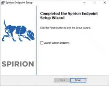 When the setup is completed, ensure the Launch Spirion Endpoint is deselected and click Finish.