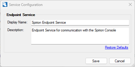 Description: Specify the description of the service that appears as the "Description" in the Services Control Manager.
