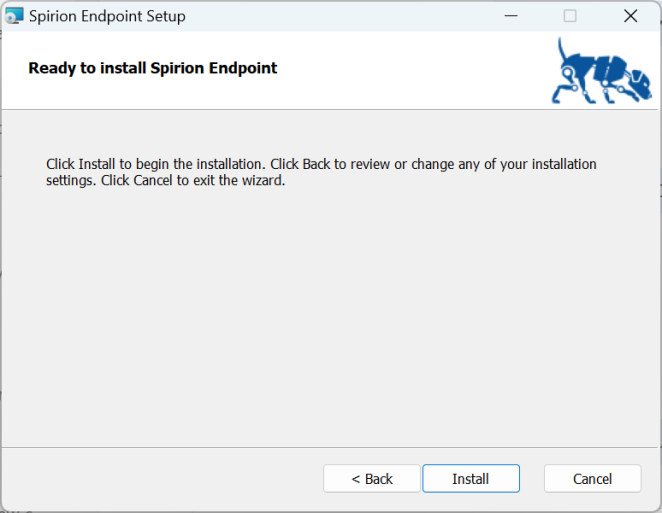 The Ready to Install Spirion Endpoint dialog opens.