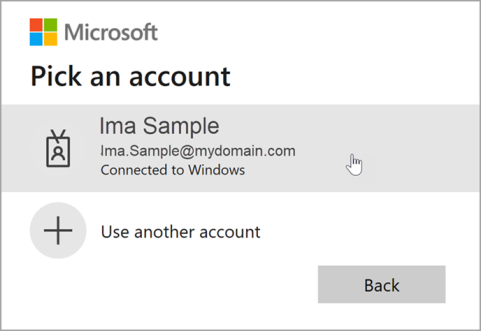 In the Microsoft Multifactor Authentication (MFA) pop-up window, select your account, enter your password, and click Sign in. Follow the verification process set by your organization.