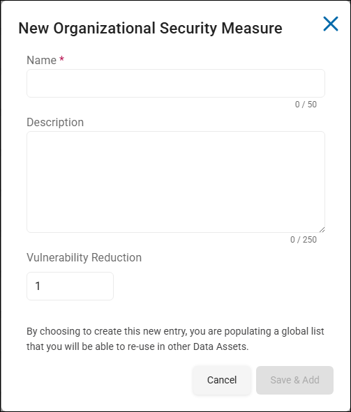 3. On the New Organizational Security Measure pop-up window, fill the following information: