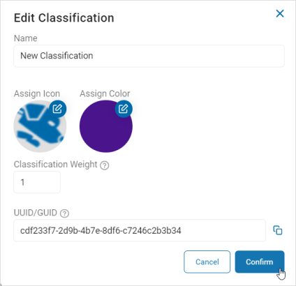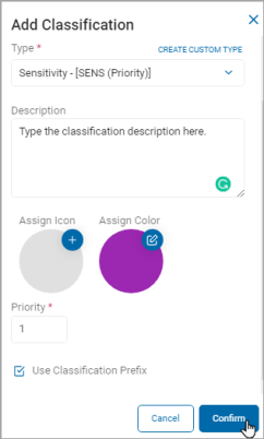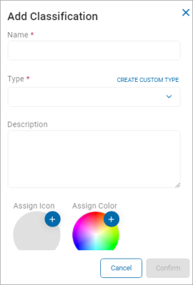 Assign Icon: Click the plus icon and select an icon from your local computer that acts as a visual representation of the Classification Type.