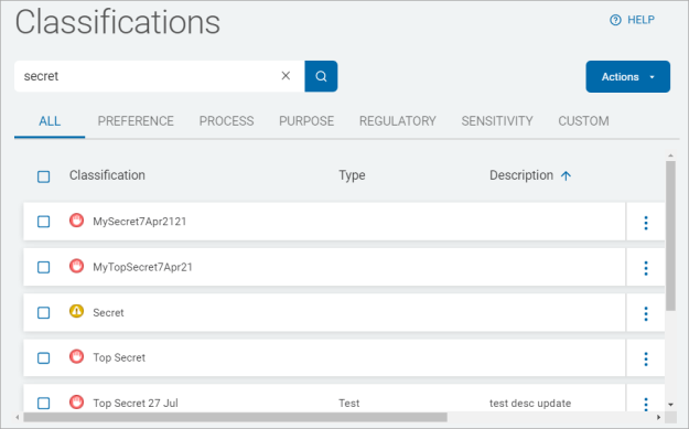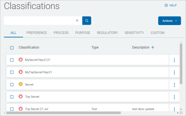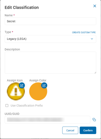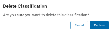 In the Delete Classification pop-up window, click Confirm to delete the Classification or Cancel to discard.
