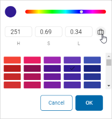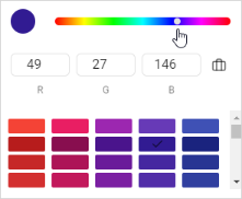 Select a color from the array by clicking a preset color tile, dragging the slider bar to your color choice, or manually setting the color values in the number boxes.