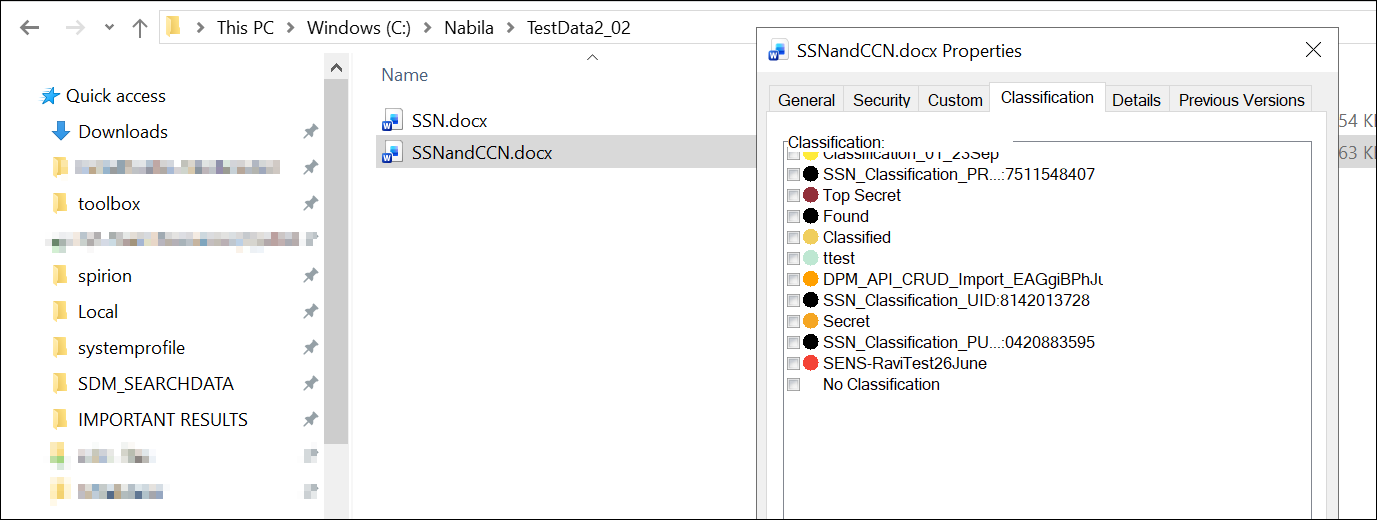 Note: Classifications don't show in Microsoft Windows File Explorer for files that are MPIP-protected.