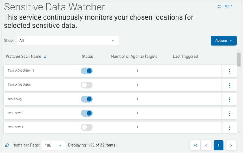 Watchers continuously monitor your chosen locations for selected sensitive data.