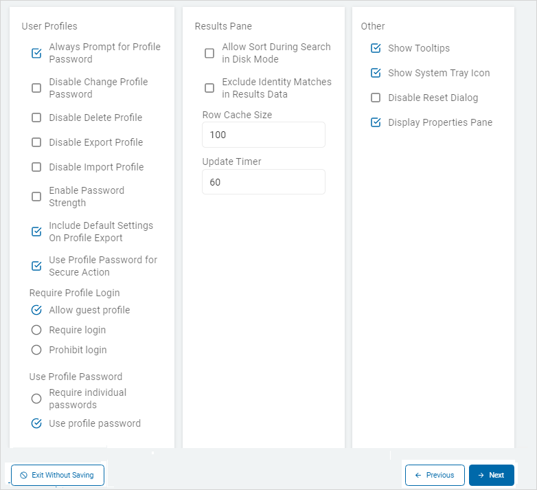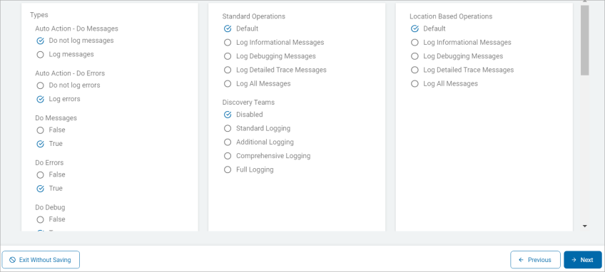 Click Next to proceed, Previous to return to the previous screen, or Exit Without Saving