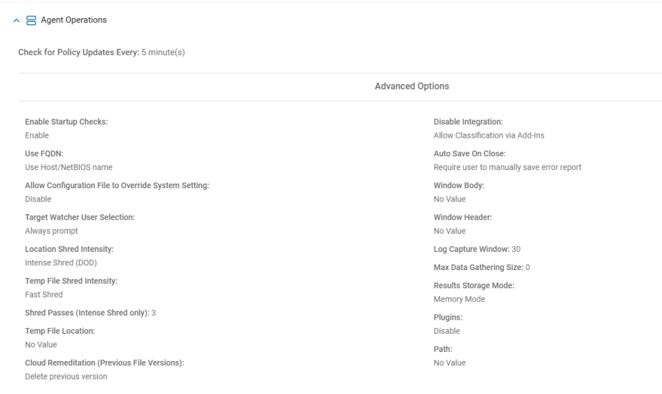 Use the table below to help you fill in the Agent Operations - Advanced Options page.