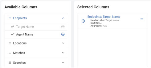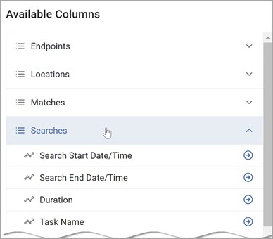 On the Columns Setup screen in the Available Columns section, choose from the following to include in your report: