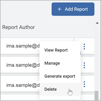 Note: Deleting a report download does not delete the report. To delete a report, see Delete a Report.