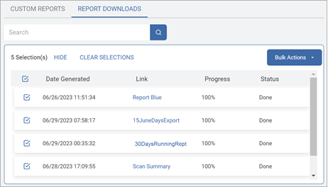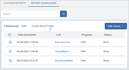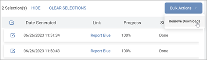 You can use the Bulk Actions feature to manage your Report downloads with bulk delete: