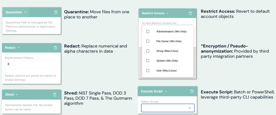 • In this way, when sensitive or personal data (Social Security number, Credit Card number, address, IMEI, etc.) is encountered during a scan of your environment, Spirion Sensitive Data Platform can take appropriate action on that data - quarantine, redact, shred, restrict access, etc.)