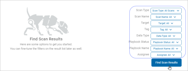 4. From the selection criteria on the right, select options from the drop-down list to sort scan results and click Find Scan Results.