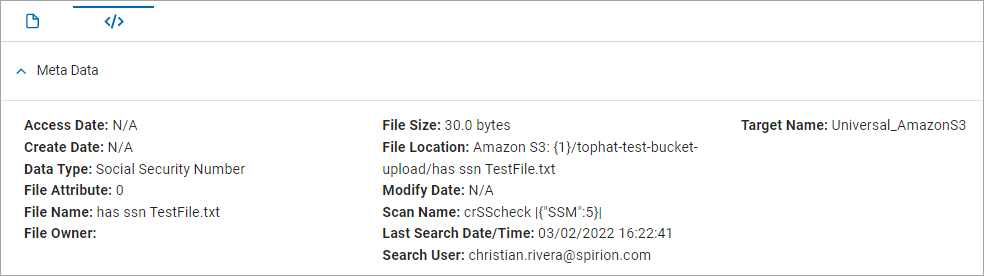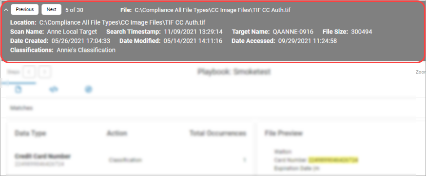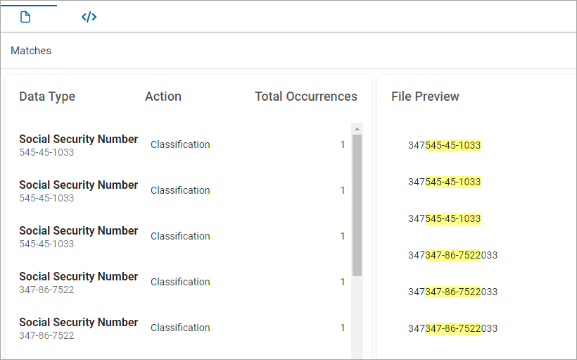 • Total Occurrences: Total occurrences of a data type found in the file scanned.