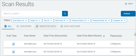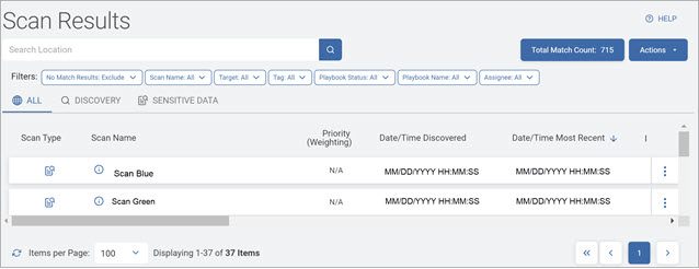 2. Click Customize. The Scan Results page displays with the selected columns.