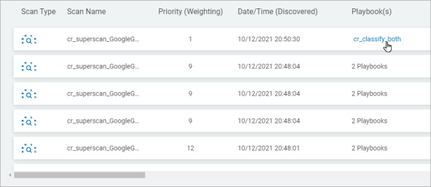 1. Each section displays the playbook executor of the scan result until you click the down arrow () and then appears at the bottom of the section.