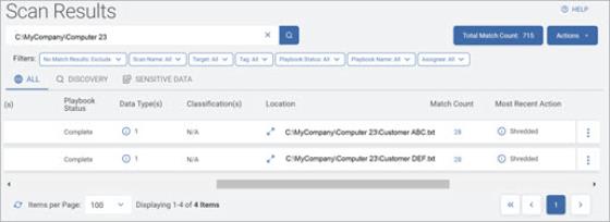 • Discovery - Scan for locations which contain sensitive data (metadata only)