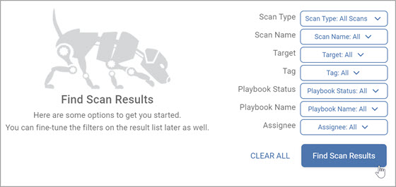 6. Click Clear All to clear all the filters, else click Find Scan Results. The Scan Results screen appears.
