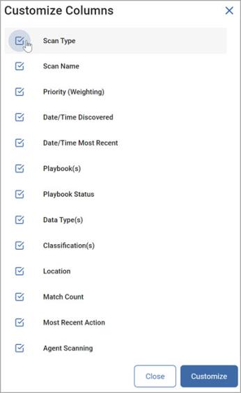 1. In the Customize Columns pop-up window, select the columns to display in the Scan Results.
