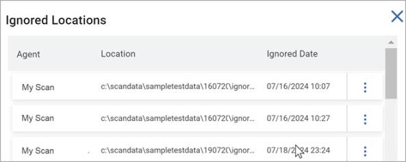 5. In the Ignored Locations pop-up window, you can view all ignored Locations.