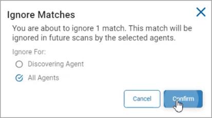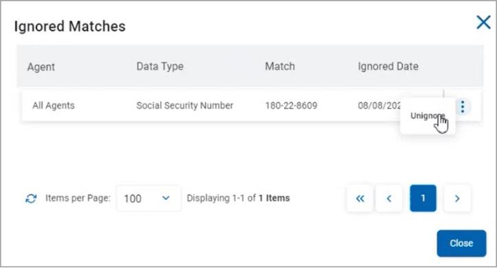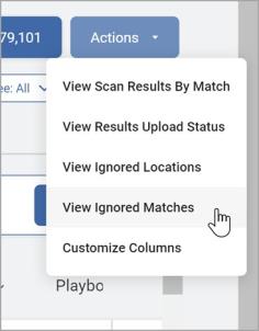 5. In the Ignored Matches pop-up window, you can view all ignored matches.